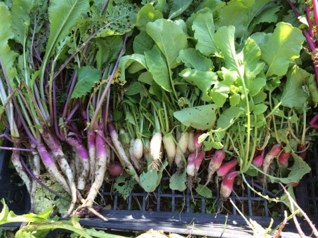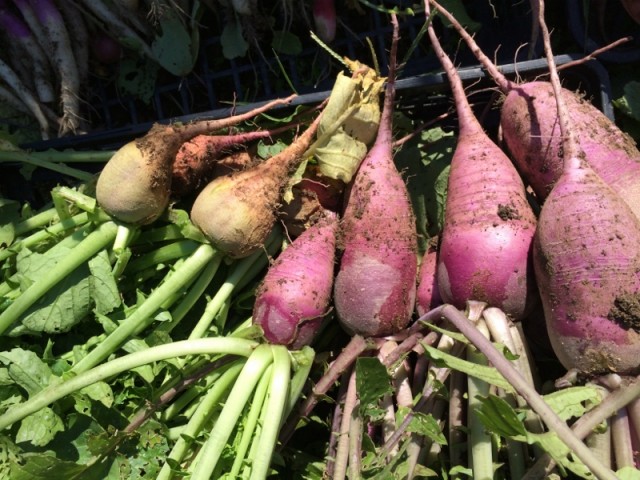 ハウスの外には、大根や人参、カブなどの根菜が約10種